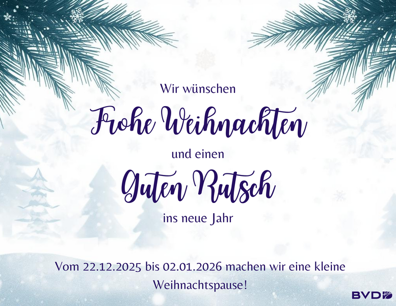 Die BVDD-Pressestelle und Redaktion in Euskirchen sowie die Geschäftsstelle in Berlin bleiben "zwischen den Jahren" geschlossen.
